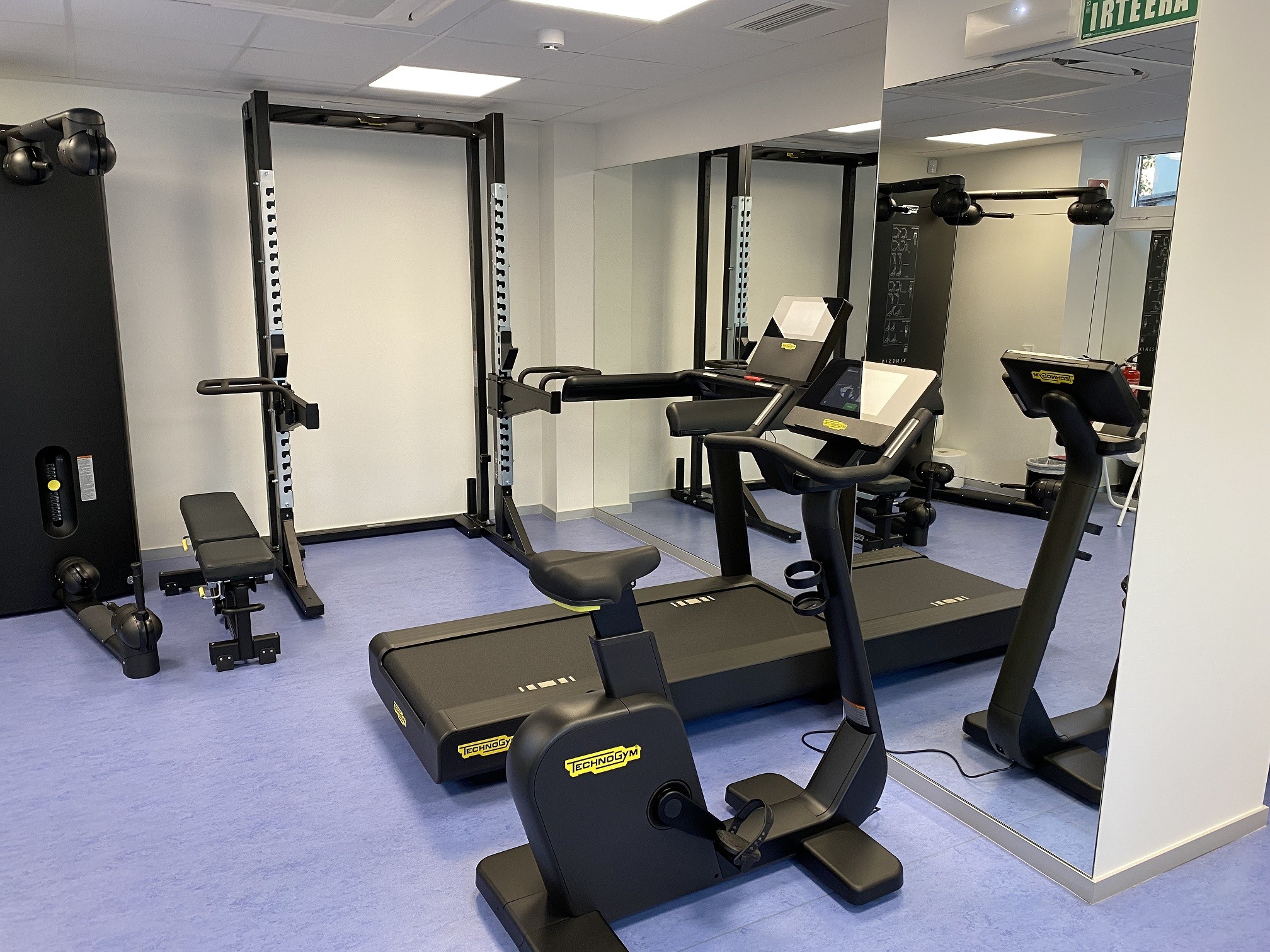 Nuestro recién inaugurado gimnasio de rehabilitación dispone de: un equipo de kinesis (sistema que reproduce gestos similares a los realizados en los puestos de trabajo para conseguir una correcta readaptación), skill tools (entrenamiento funcional para fortalecer y recuperar lesiones), halfrack (equipo para trabajar la fuerza a través de pesos libres), una cinta de correr, una bicicleta estática y entrenamiento de suspensión.