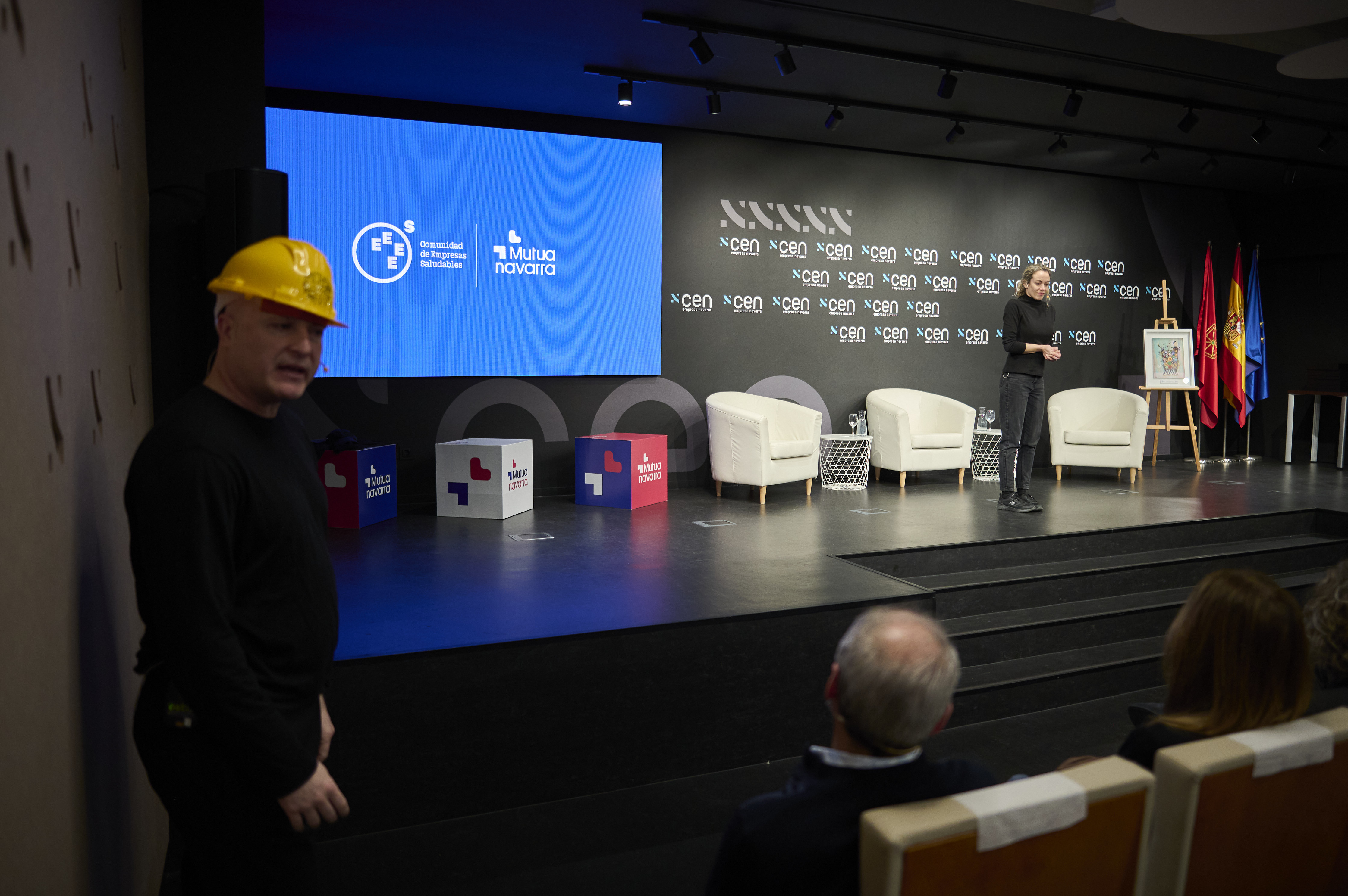 El programa del acto, presentado por Javier Andueza, responsable de Relaciones Institucionales de Mutua Navarra, incluía una representación teatral de la mano de la compañía Acto Seguido. Una teatralización en la que dos actores han escenificado la evolución de la gestión de personas desde los años 90 hasta hoy, utilizando como eje central los pilares de la salud laboral: liderazgo, organización del trabajo, apoyo a las personas con dificultad y planes estructurados.