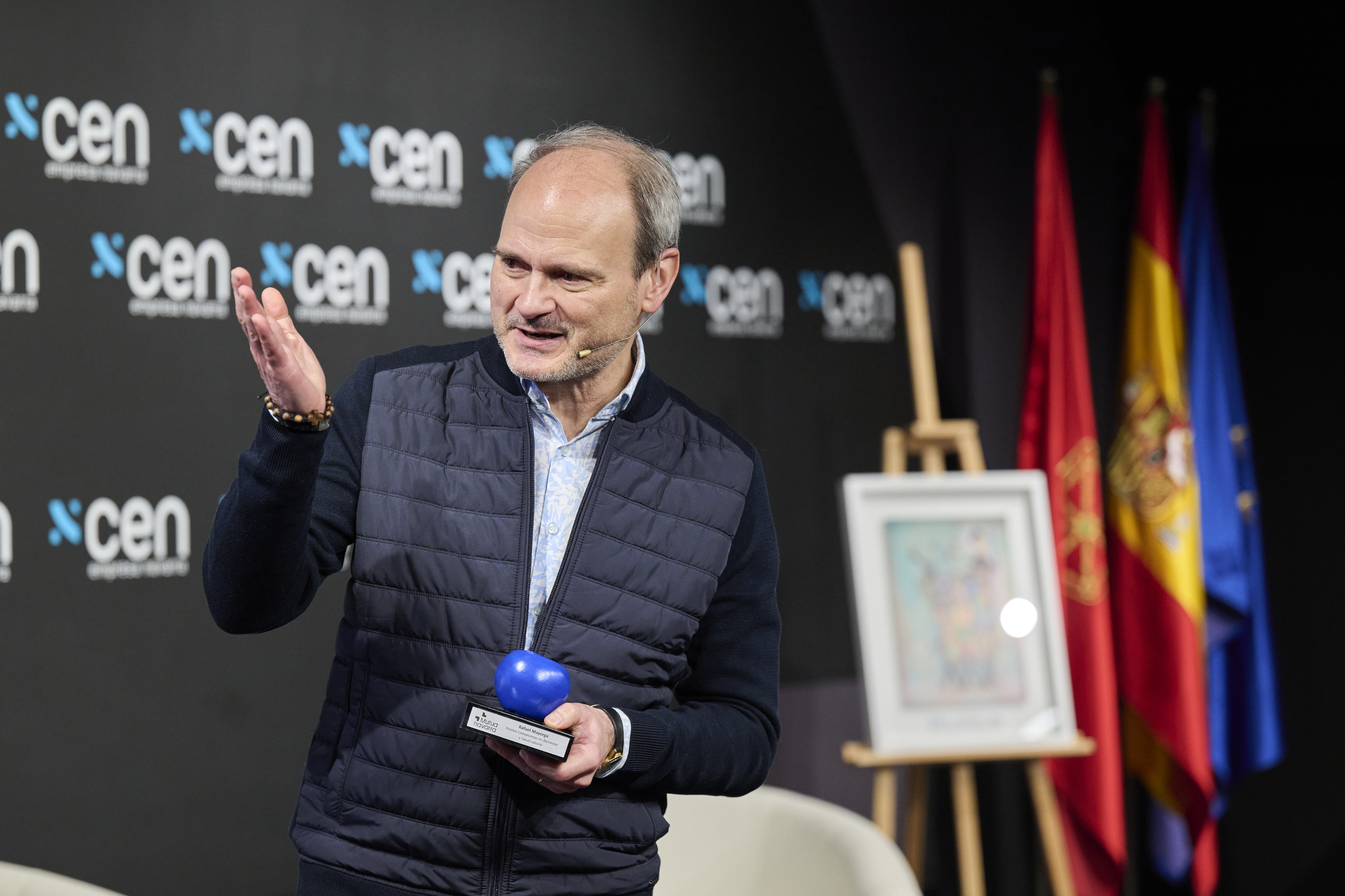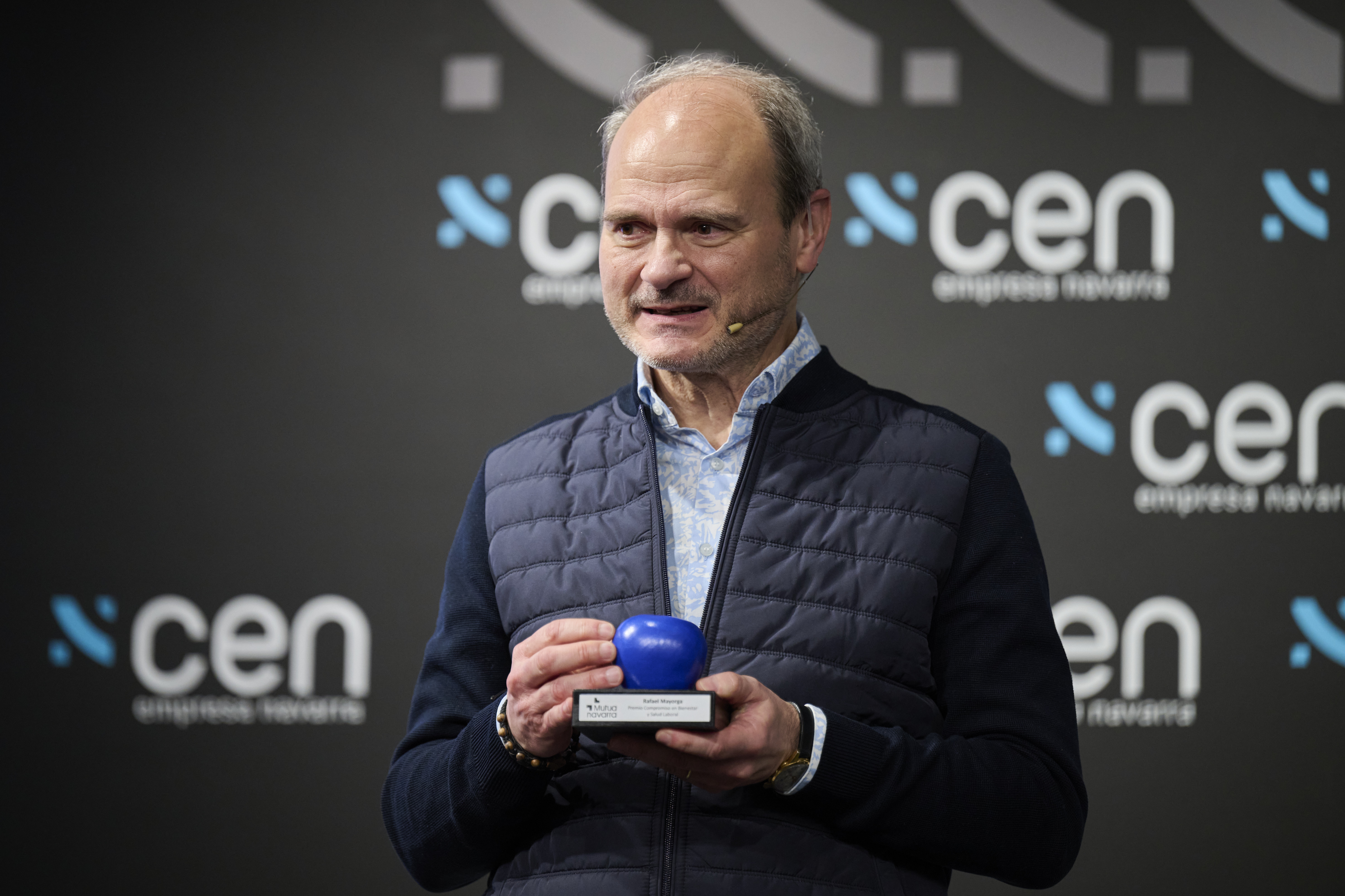 Asimismo, se ha reconocido a Rafael Mayorga, coordinador de Actividades de Promoción de la Salud en Mutua Navarra, con una manzana azul que simboliza su sólido y prolongado compromiso con el bienestar y la salud laboral. Un homenaje a su extensa trayectoria acompañando, asesorando y guiando a las empresas en la implantación de entornos de trabajo más saludables.